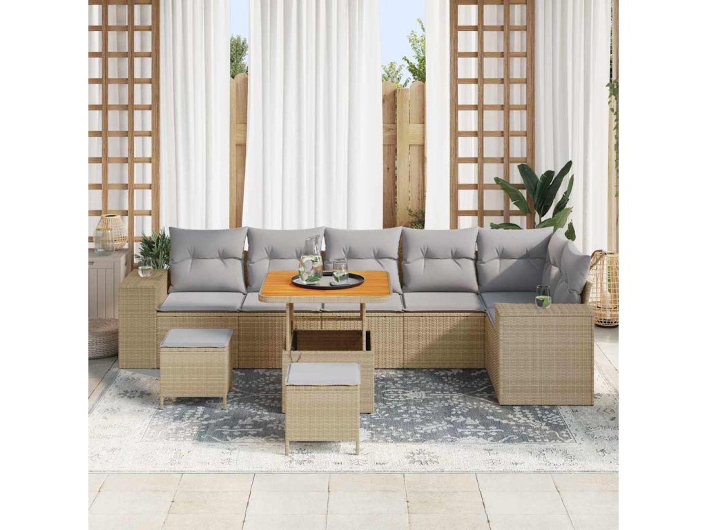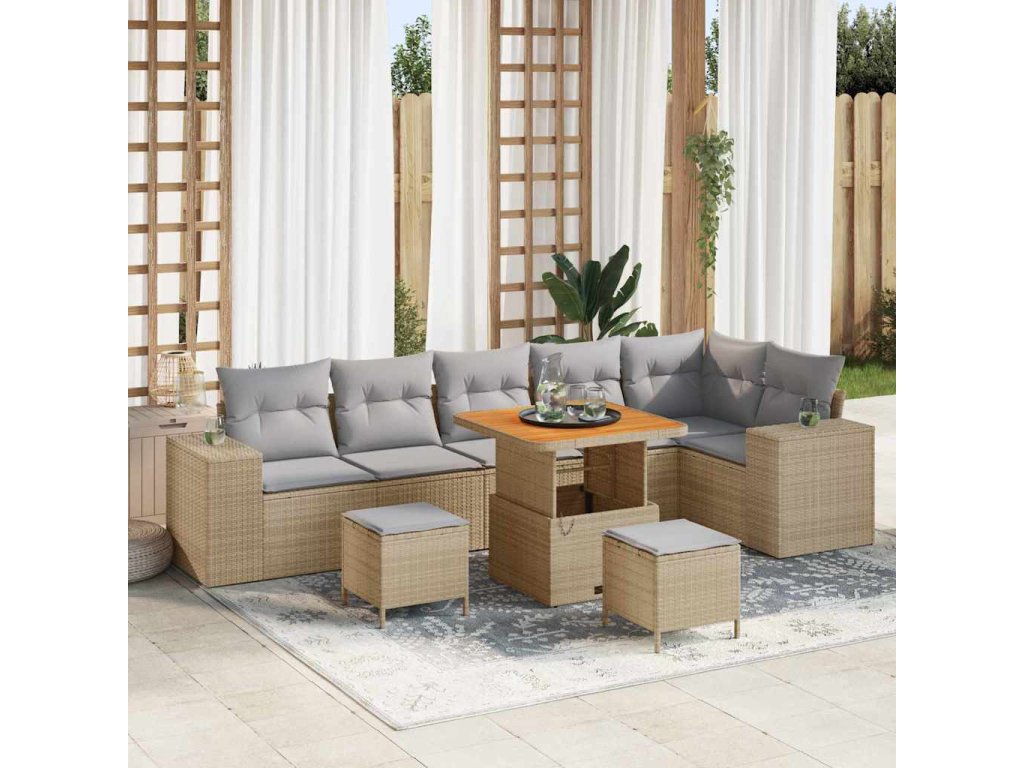 Sada zahradních pohovek s polštářem 9 pcs Béžová polyratan 3362022
