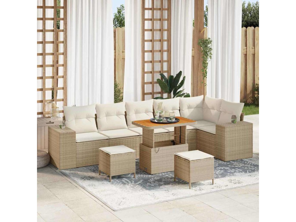 Sada zahradních pohovek s polštářem 9 pcs Béžová polyratan 3362026