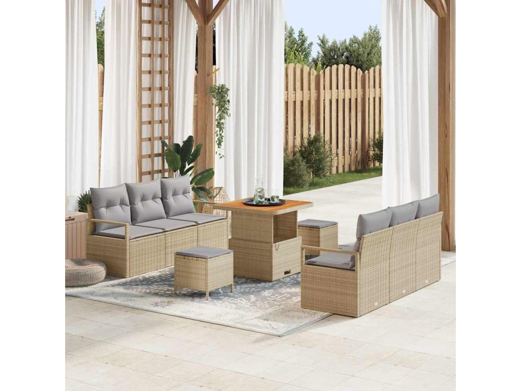 Sada zahradních pohovek s polštářem 9 pcs Béžová polyratan 3362477