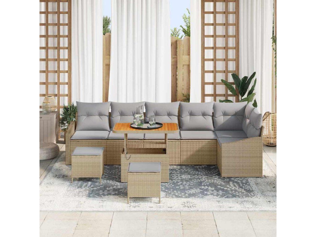 Sada zahradních pohovek s polštářem 9 pcs Béžová polyratan 3362677