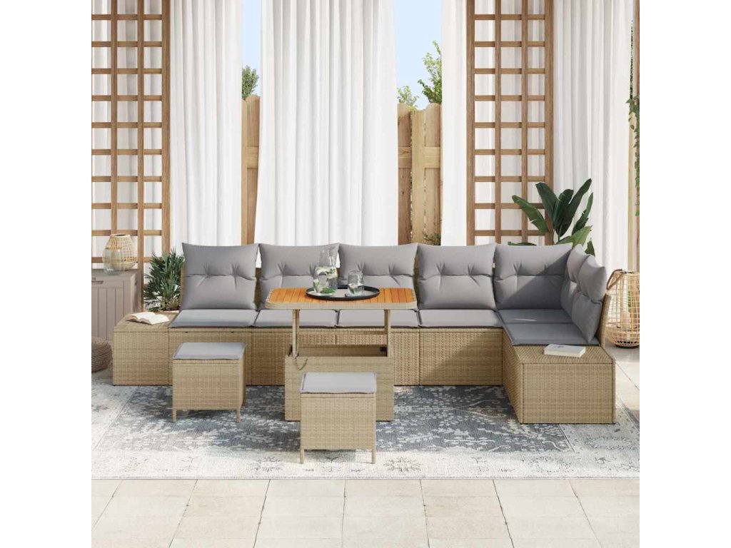 Sada zahradních pohovek s polštářem 9 pcs Béžová polyratan 3362807