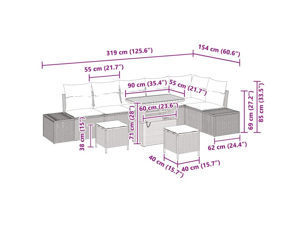 - Péče a údržba: Aby vaše souprava zůstala v perfektním stavu, používejte ochranný kryt, když ji nepoužíváte. Pravidelně ji udržujte čištěním jemnými prostředky, což zachová její vzhled na více sezon.