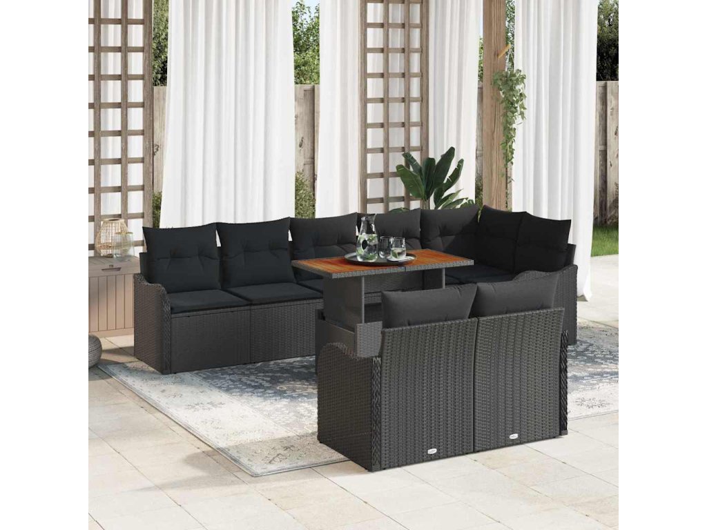 Sada zahradních pohovek s polštářem 9 pcs Černá 3349477