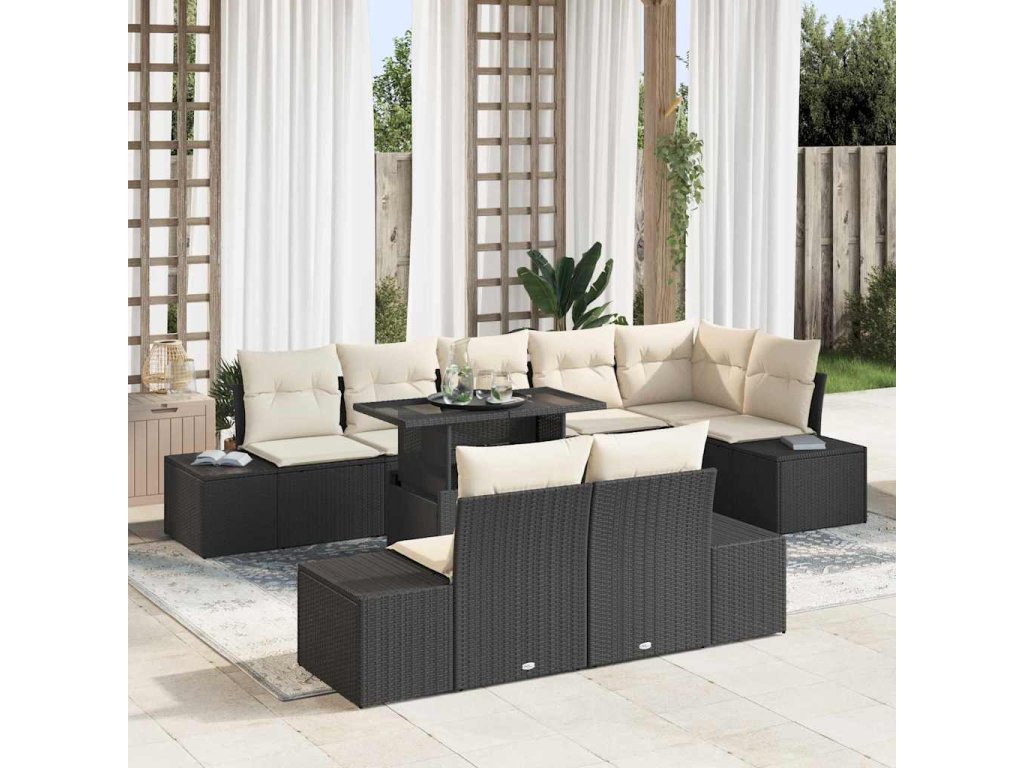 Sada zahradních pohovek s polštářem 9 pcs Černá a krémová 3349203