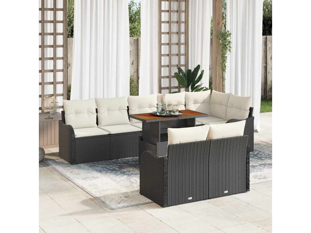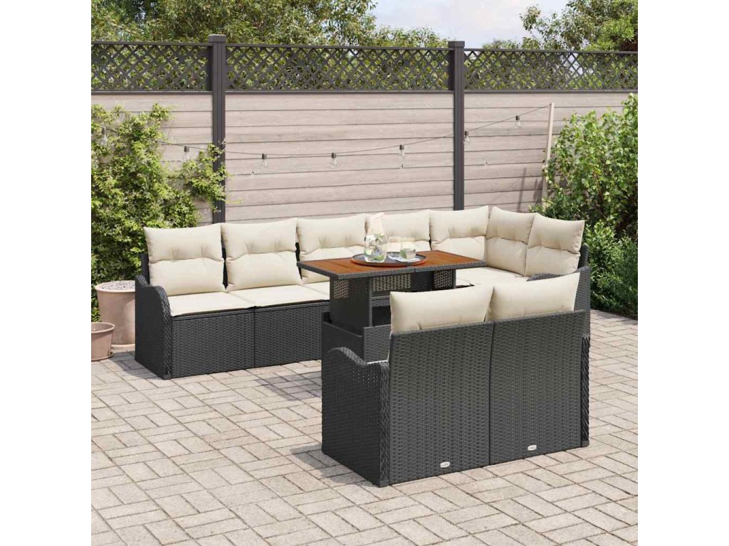 Sada zahradních pohovek s polštářem 9 pcs Černá a krémová 3349473
