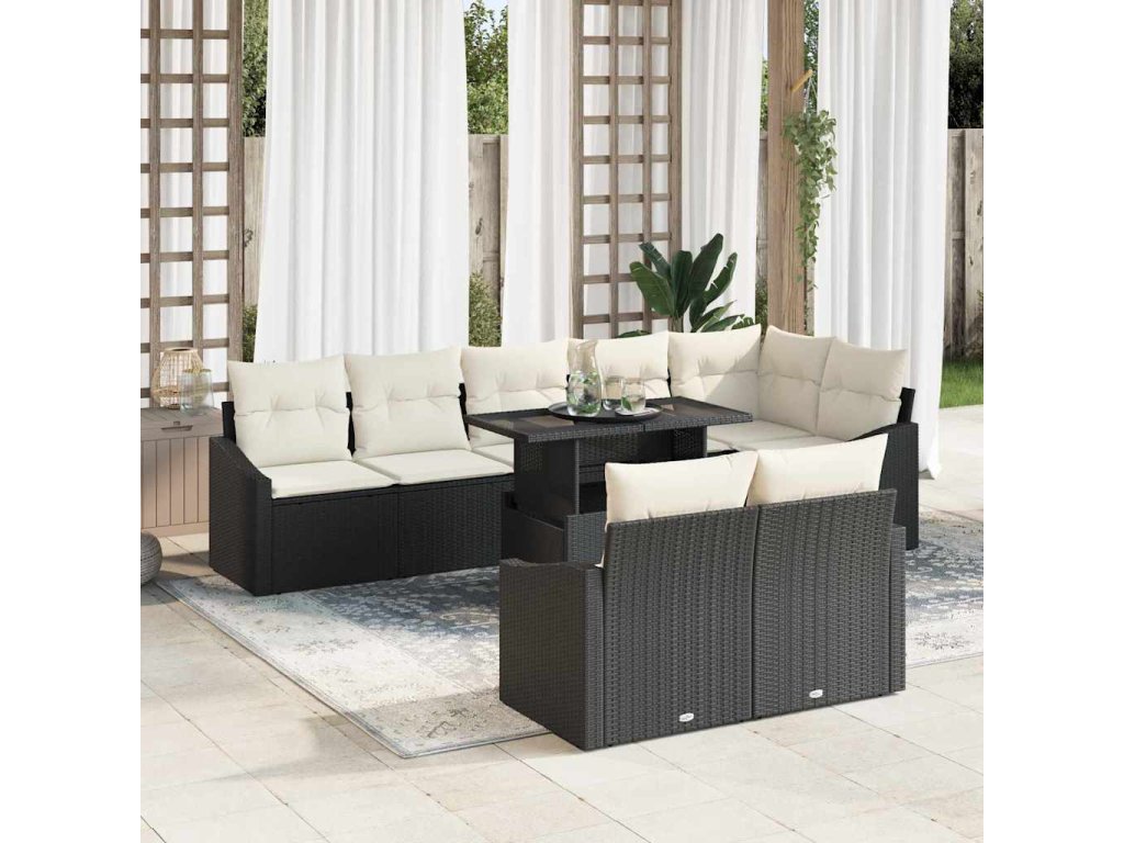 Sada zahradních pohovek s polštářem 9 pcs Černá a krémová 3357760