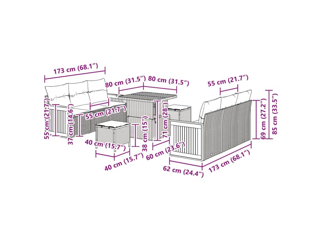 Tahle moderní zahradní souprava vylepší jakékoliv venkovní místo díky skvělýmu designu a funkčnosti. Je to pozvání k sezení, záměrně navržené tak, aby ladilo s estetikou a flexibilitou. Perfektní na jarní a letní akce, její kouzlo tkví v minimalistickém stylu, co se bez problémů hodí do zahrad nebo na terasy. Masivní akáciové dřevo a poly ratan dohromady vytváří nádherný soubor, co vypadá pohodlně a přívětivě zároveň, ale stále je elegantní.
