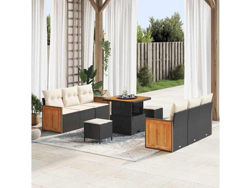 Sada zahradních pohovek s polštářem 9 pcs Černá a krémová 3363255