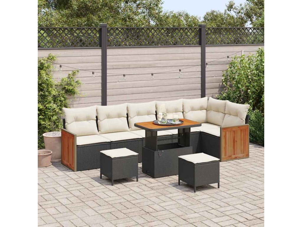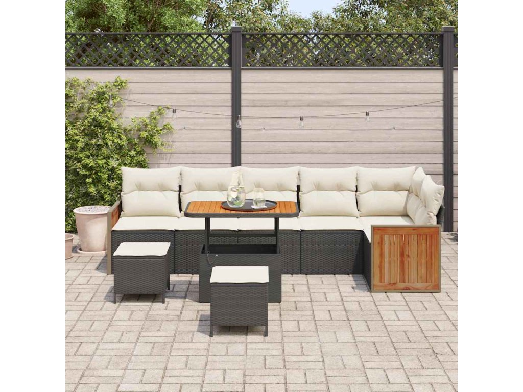 Sada zahradních pohovek s polštářem 9 pcs Černá a krémová 3363325