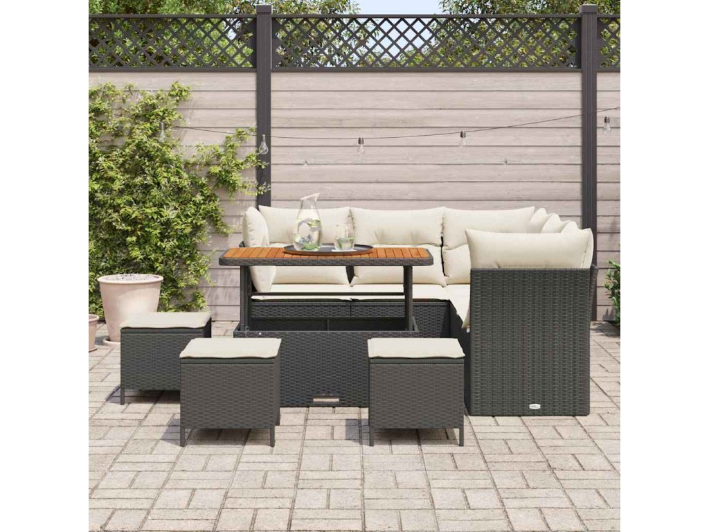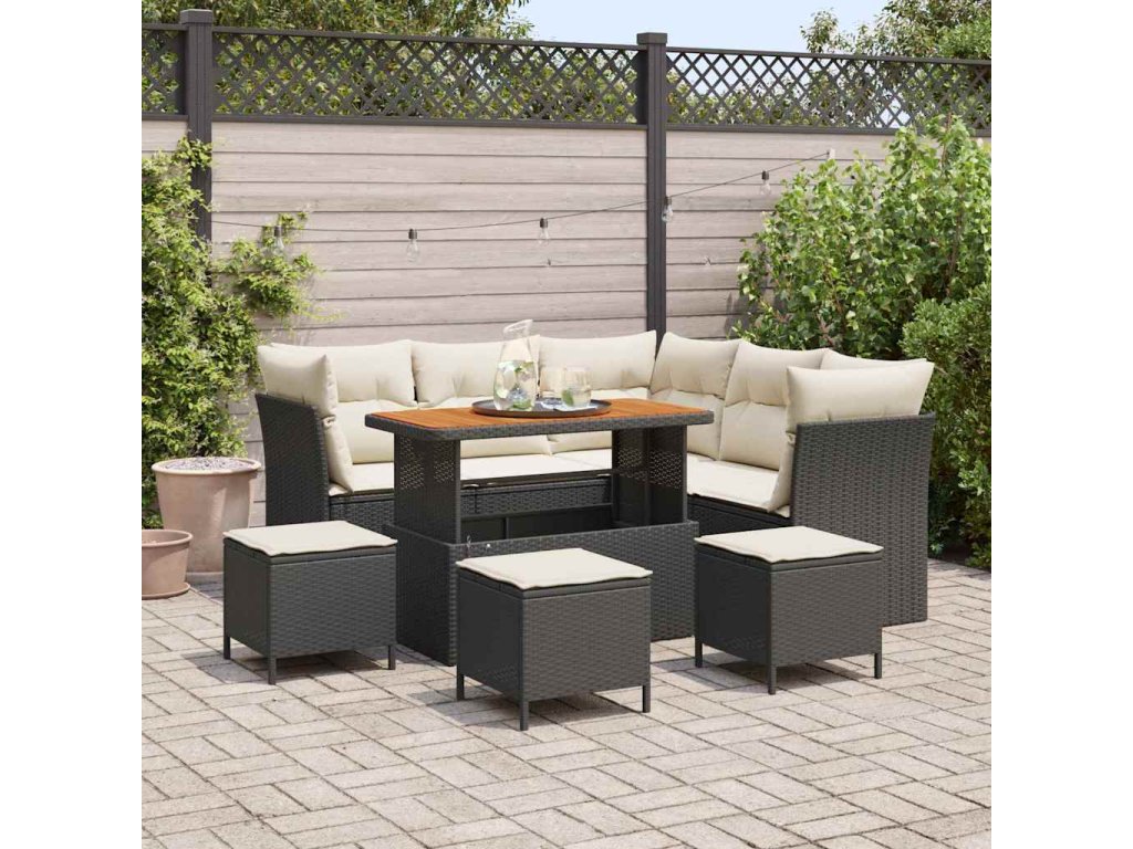 Sada zahradních pohovek s polštářem 9 pcs Černá a krémová 3363440