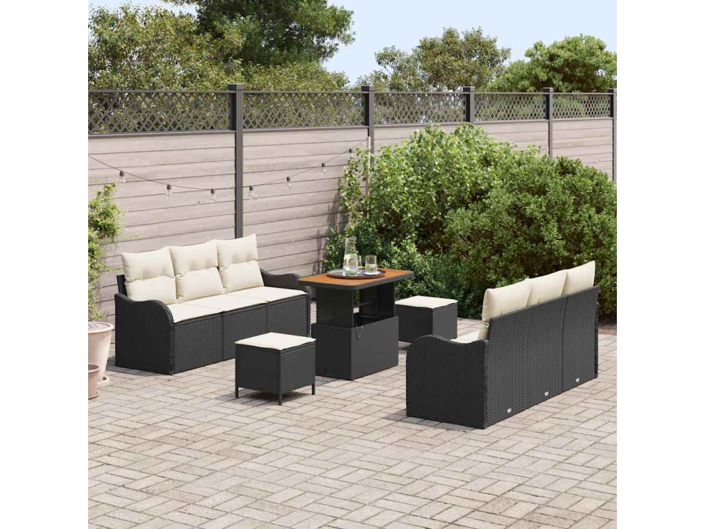Sada zahradních pohovek s polštářem 9 pcs Černá a krémová 3364170