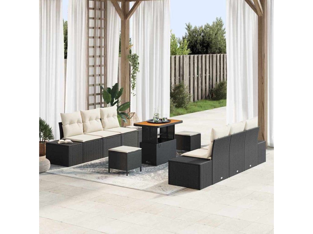 Sada zahradních pohovek s polštářem 9 pcs Černá a krémová 3364690