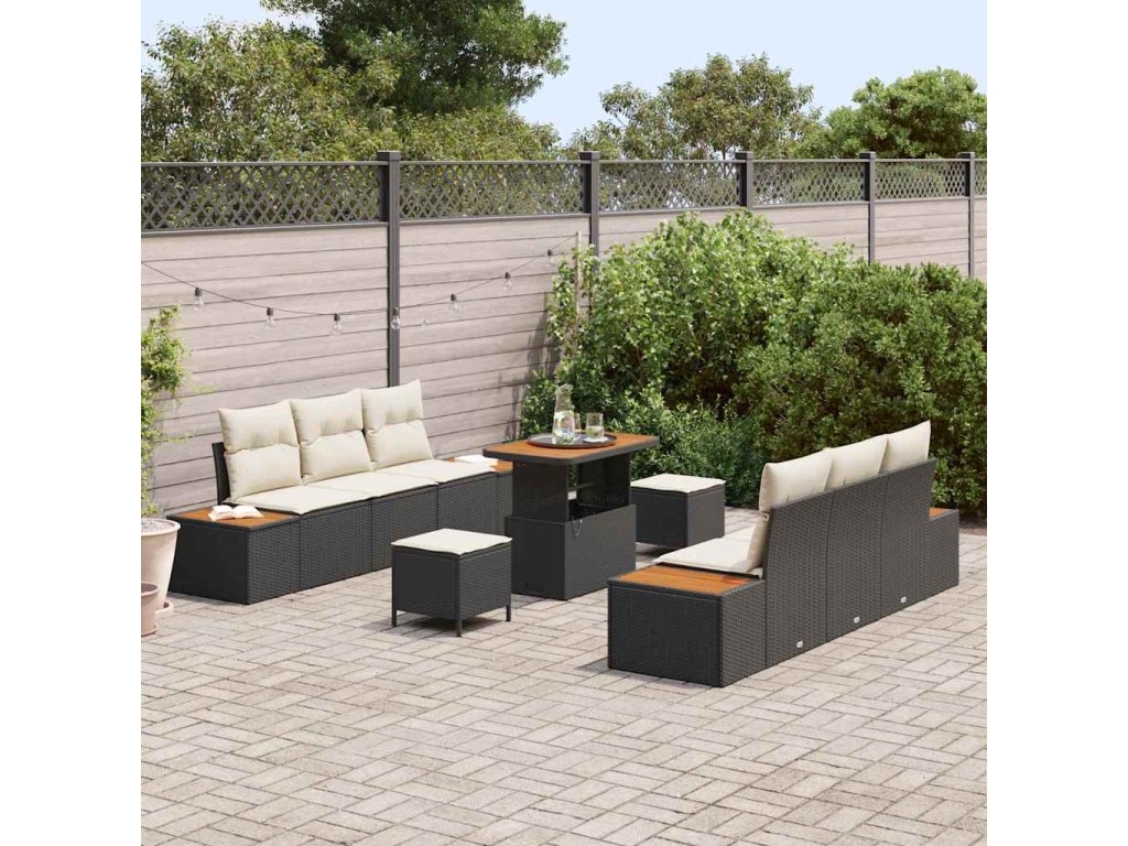 Sada zahradních pohovek s polštářem 9 pcs Černá a krémová 3364820
