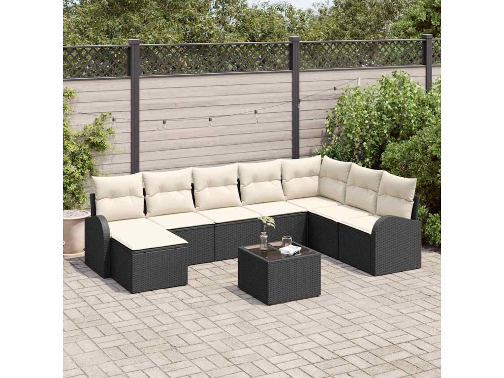 Sada zahradních pohovek s polštářem 9 pcs Černá Poly ratan 3346167