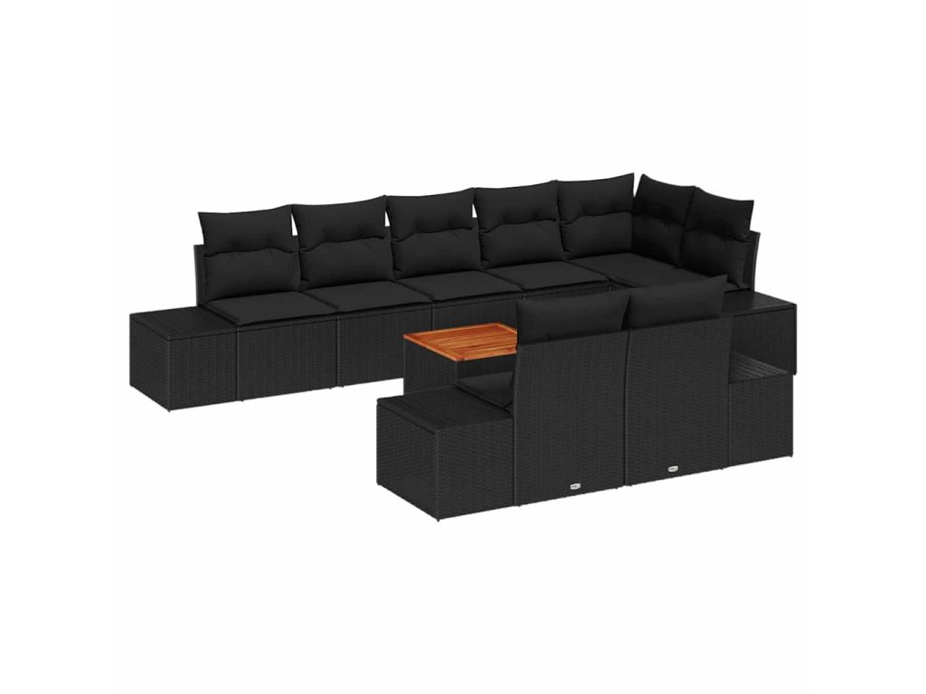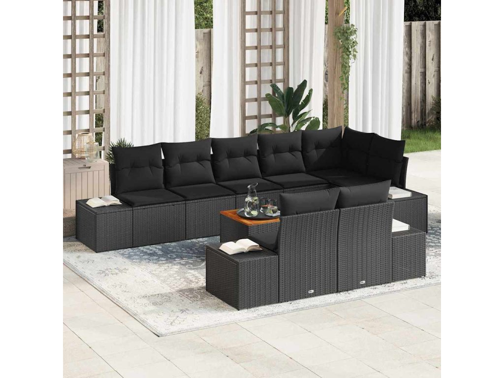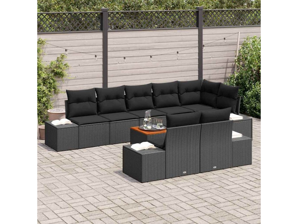 Sada zahradních pohovek s polštářem 9 pcs Černá Poly ratan 3347975