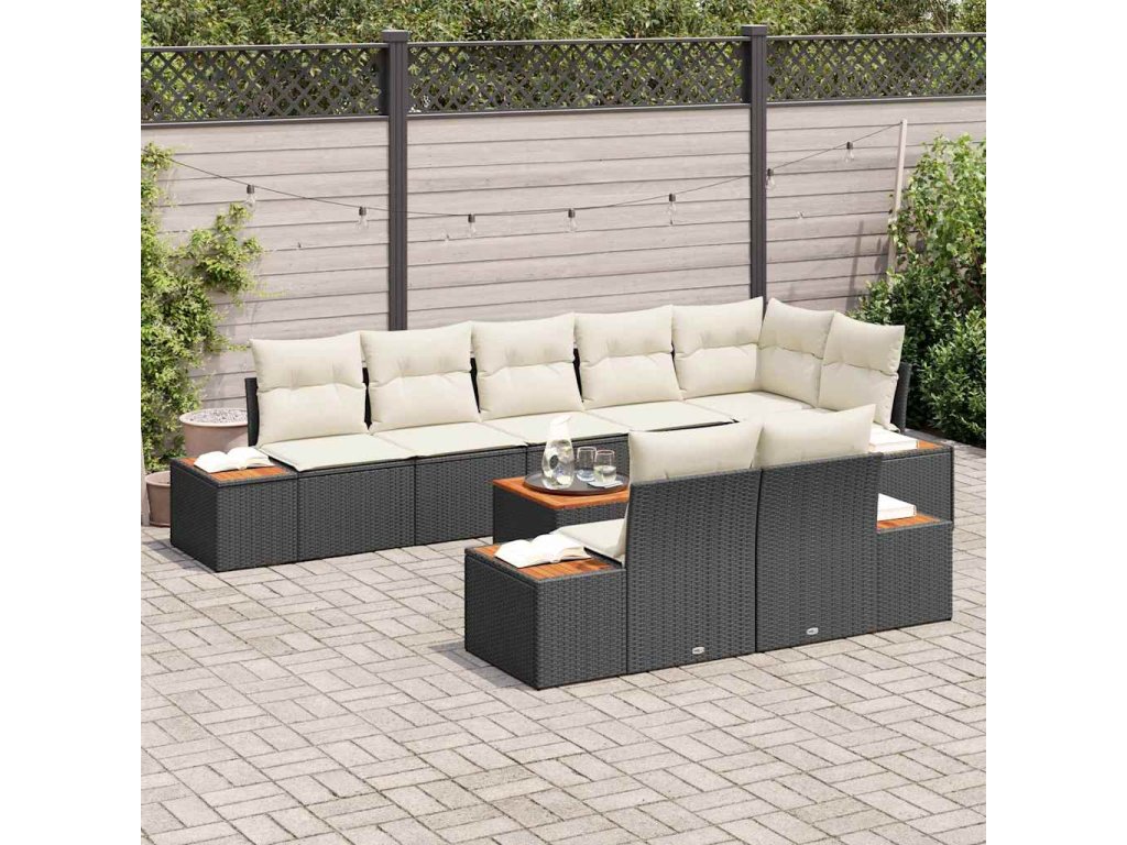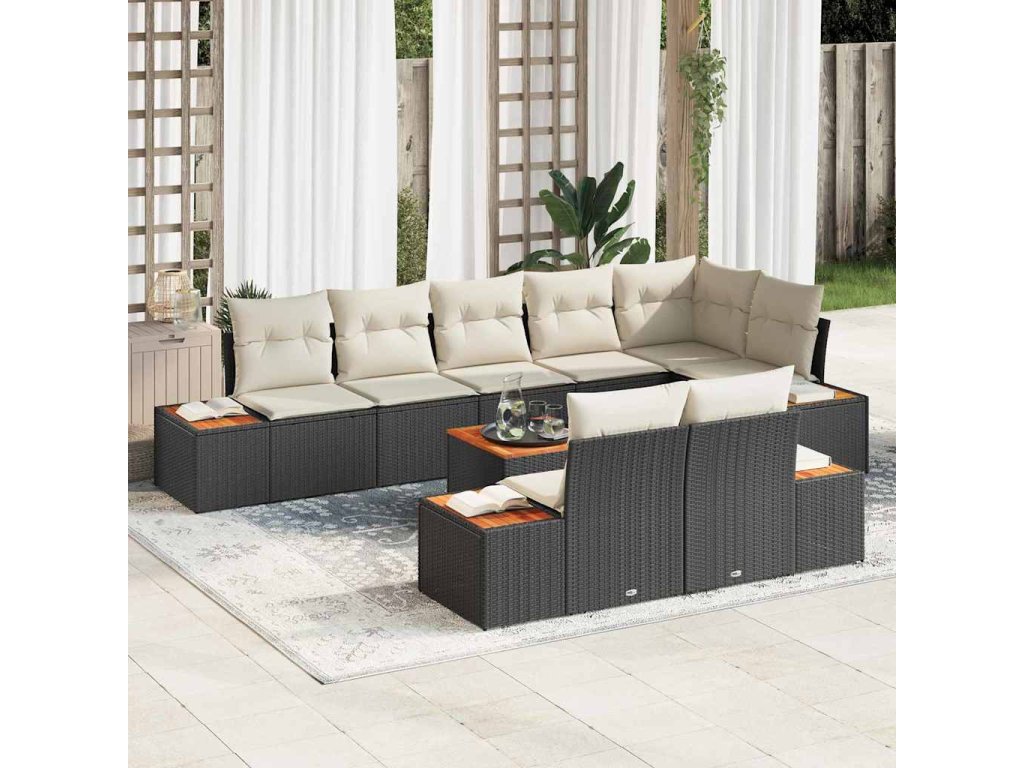 Sada zahradních pohovek s polštářem 9 pcs Černá Poly ratan 3348113