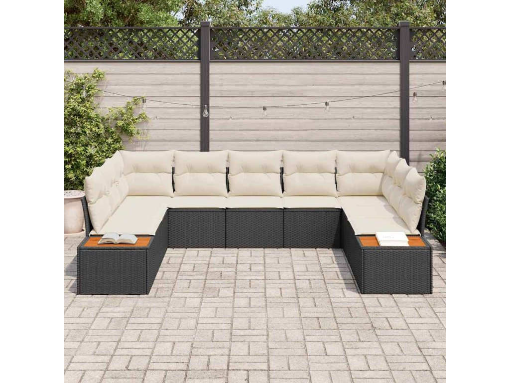 Sada zahradních pohovek s polštářem 9 pcs Černá Poly ratan 3348163
