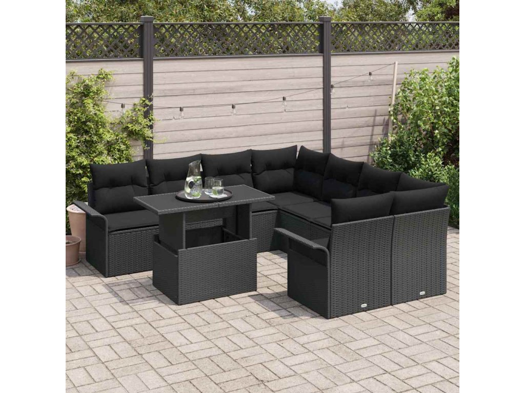 Sada zahradních pohovek s polštářem 9 pcs Černá Poly ratan 3348259