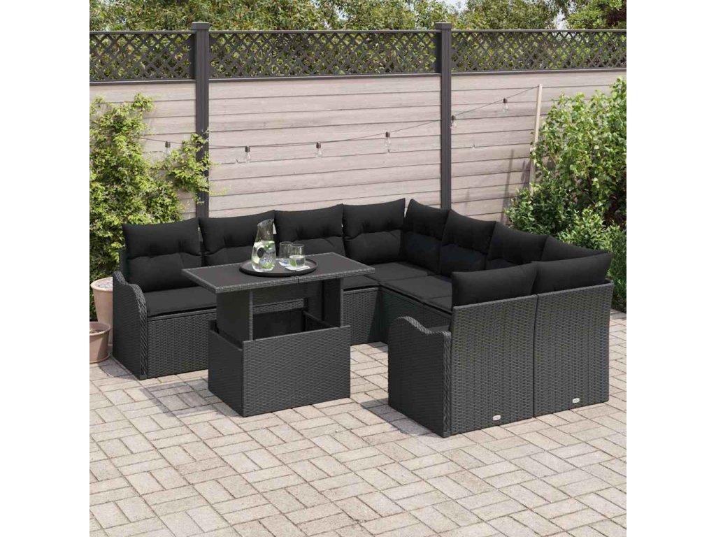 Sada zahradních pohovek s polštářem 9 pcs Černá Poly ratan 3348439