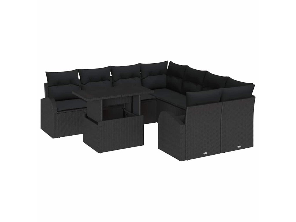 Sada zahradních pohovek s polštářem 9 pcs Černá Poly Ratan 3357356