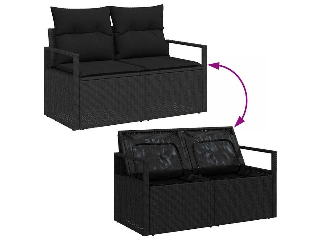 Sada zahradních pohovek s polštářem 9 pcs Černá Poly ratan 3357526