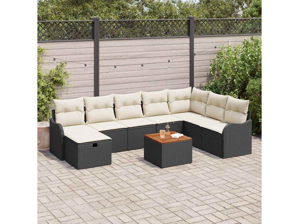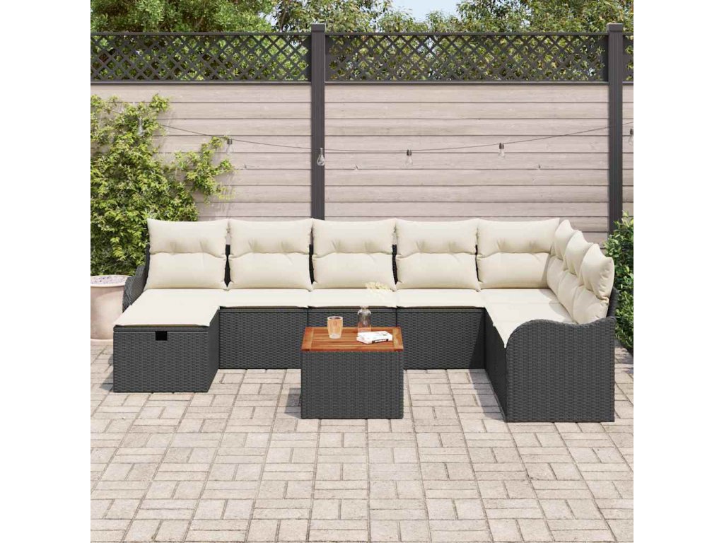 Sada zahradních pohovek s polštářem 9 pcs Černá Poly ratan 3359495