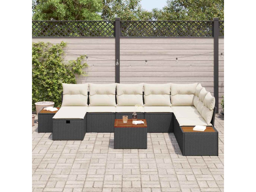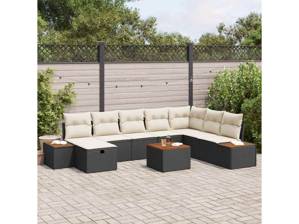 Sada zahradních pohovek s polštářem 9 pcs Černá Poly ratan 3359659