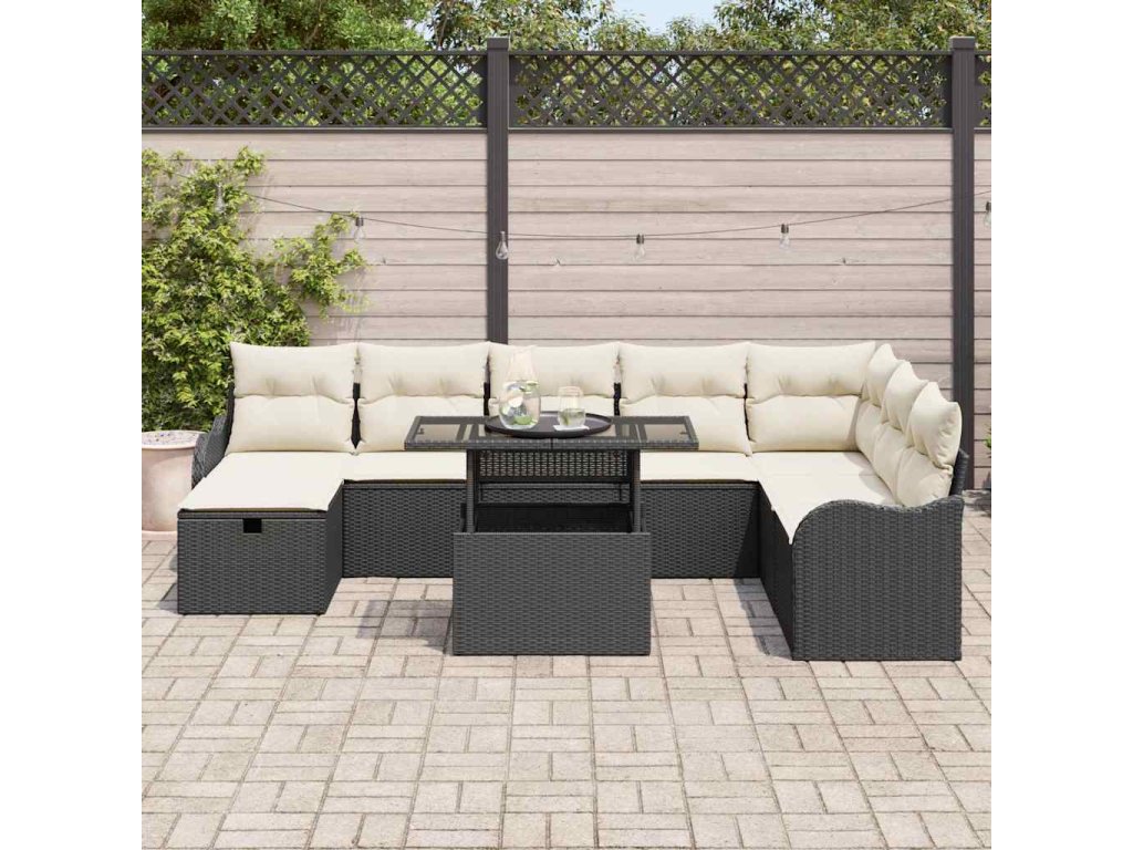 Sada zahradních pohovek s polštářem 9 pcs Černá Poly ratan 3359734