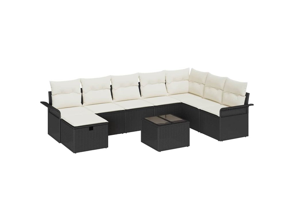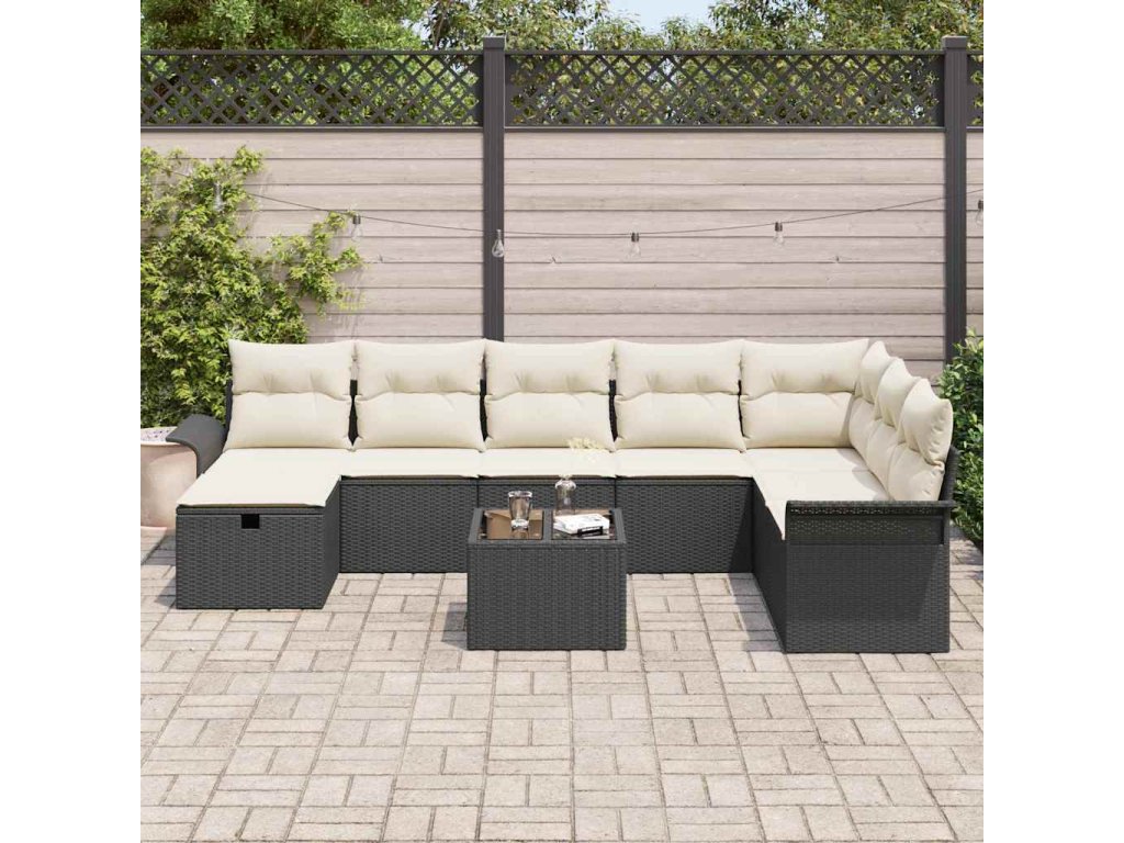 Sada zahradních pohovek s polštářem 9 pcs Černá Poly ratan 3360268