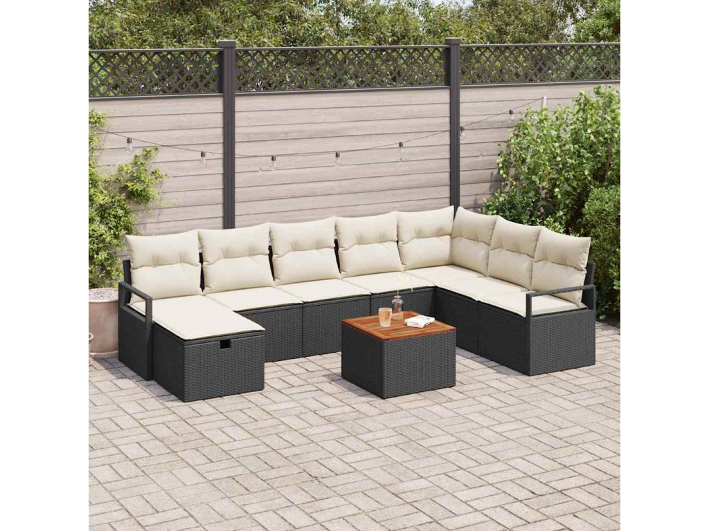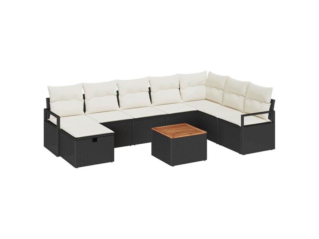Sada zahradních pohovek s polštářem 9 pcs Černá Poly ratan 3360883