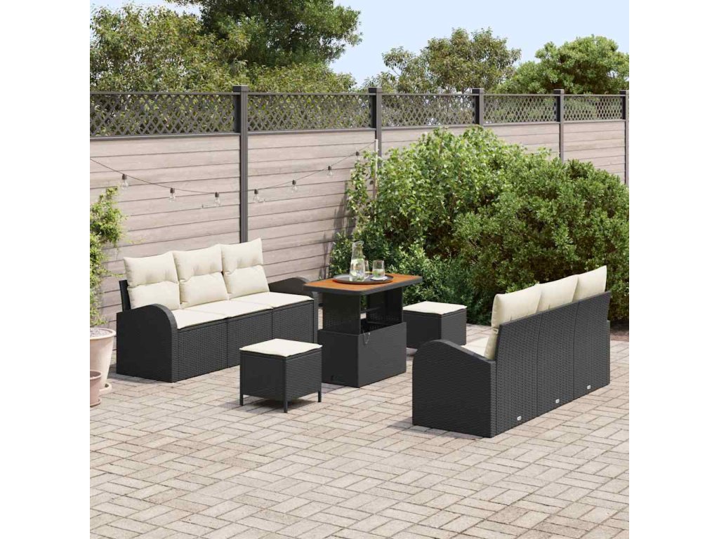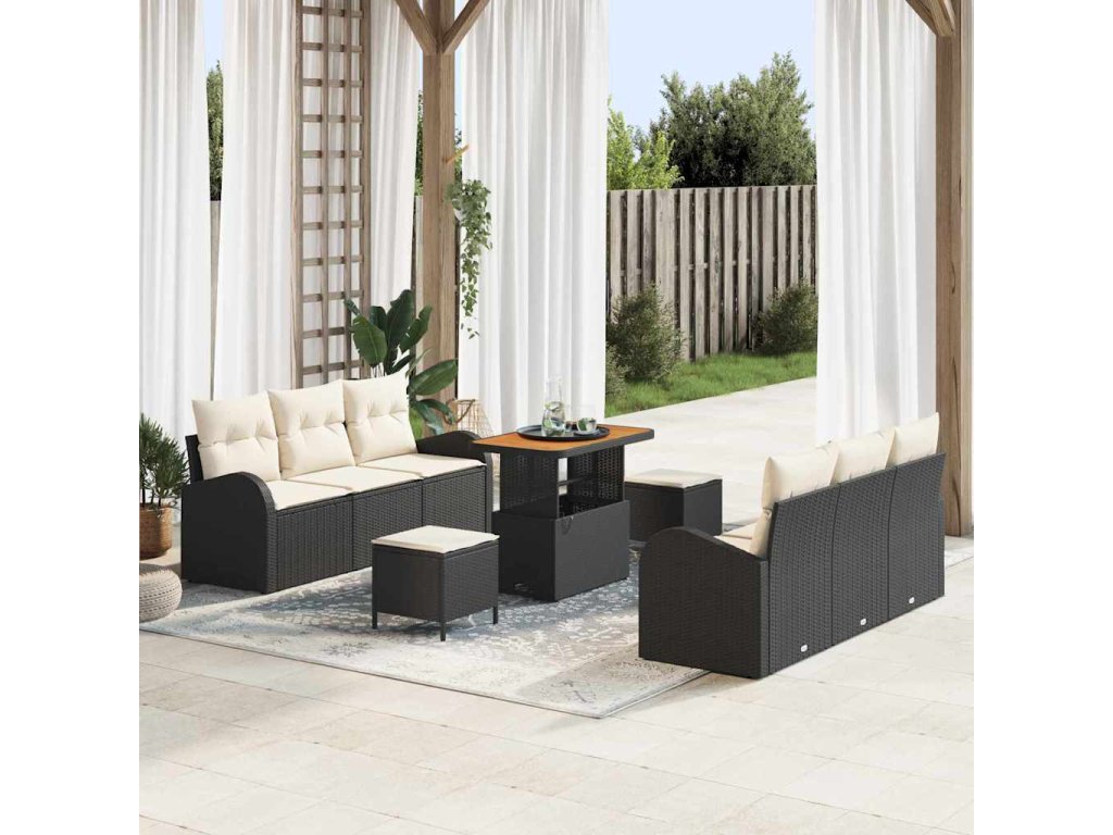 Sada zahradních pohovek s polštářem 9 pcs Černá Poly ratan 3362350