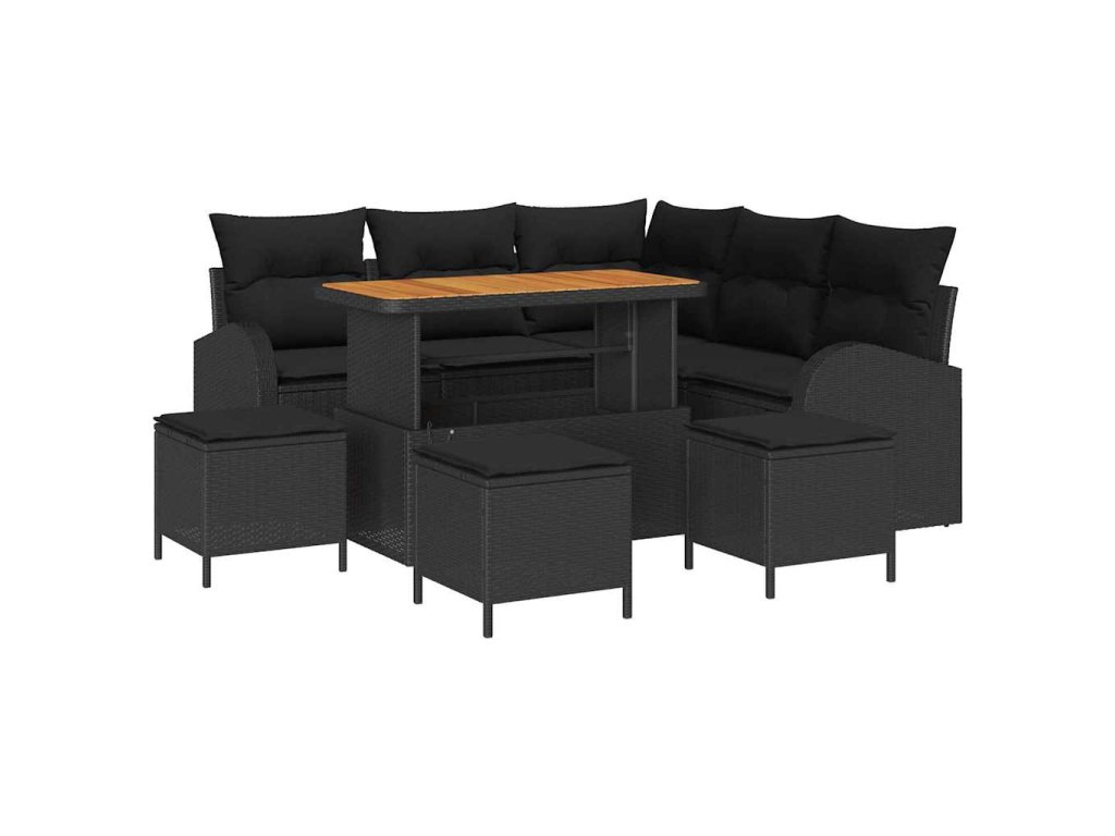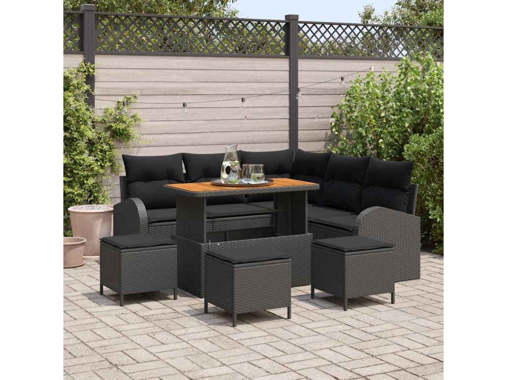 Sada zahradních pohovek s polštářem 9 pcs Černá Poly ratan 3362399