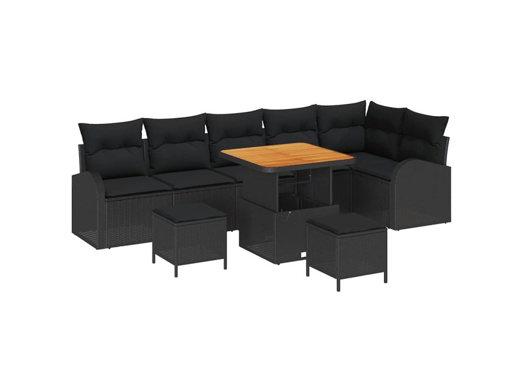 Sada zahradních pohovek s polštářem 9 pcs Černá Poly ratan 3362409
