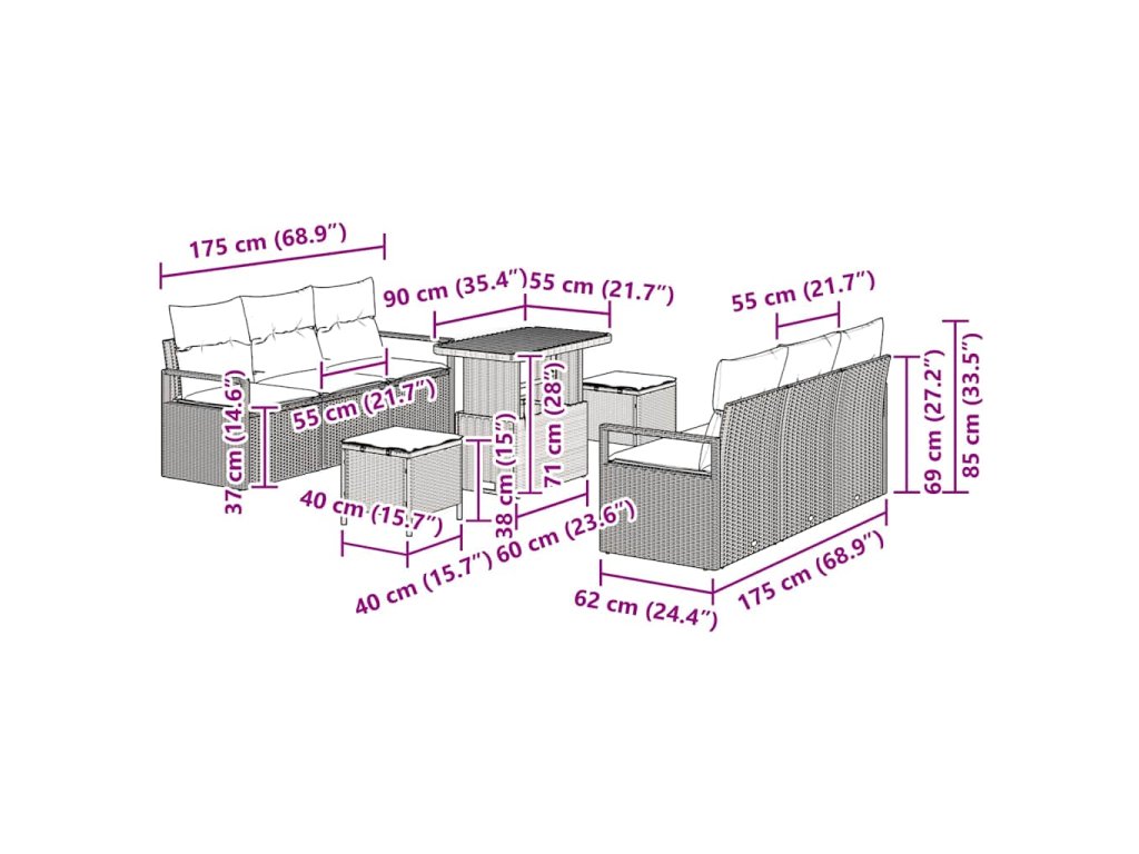 - Doporučené použití: Skvělé pro zahrady a terasy, tato souprava je ideální pro setkání nebo příjemné chvilky o samotě. Její modulární design umožňuje různé uspořádání, které se hodí do každého prostoru.