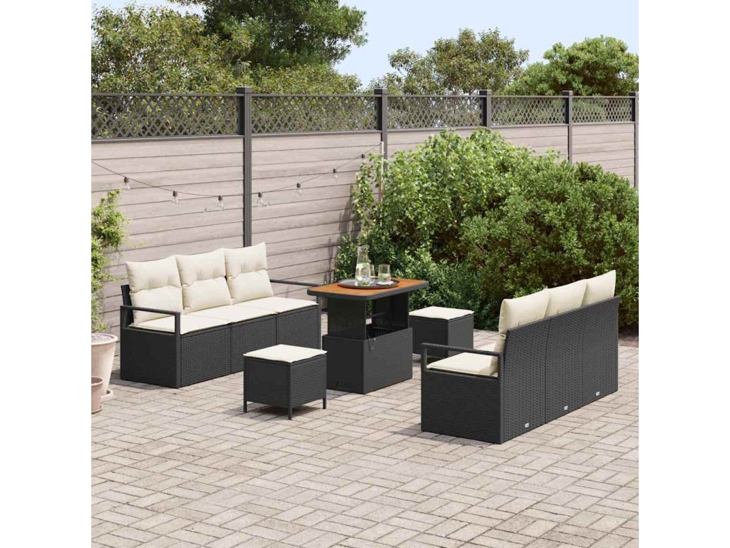Sada zahradních pohovek s polštářem 9 pcs Černá Poly ratan 3362480