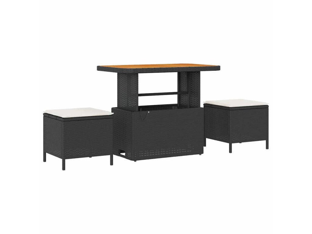 - Součásti: Souprava má pevný rám z práškově lakované oceli, což jí dodává stabilitu. Ergonomický poly ratan poskytuje pohodlí a oporu, zatímco krásný akáciový dřevo dodává designu přirozený vzhled. Každý kousek je vybrán pro jednoduchou údržbu a dlouhotrvající výkon.