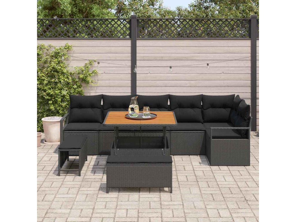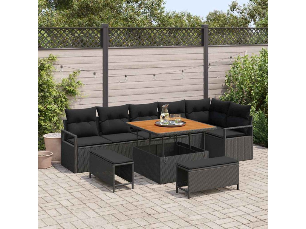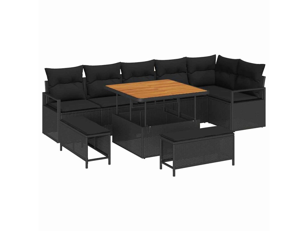 Sada zahradních pohovek s polštářem 9 pcs Černá Poly ratan 3362534