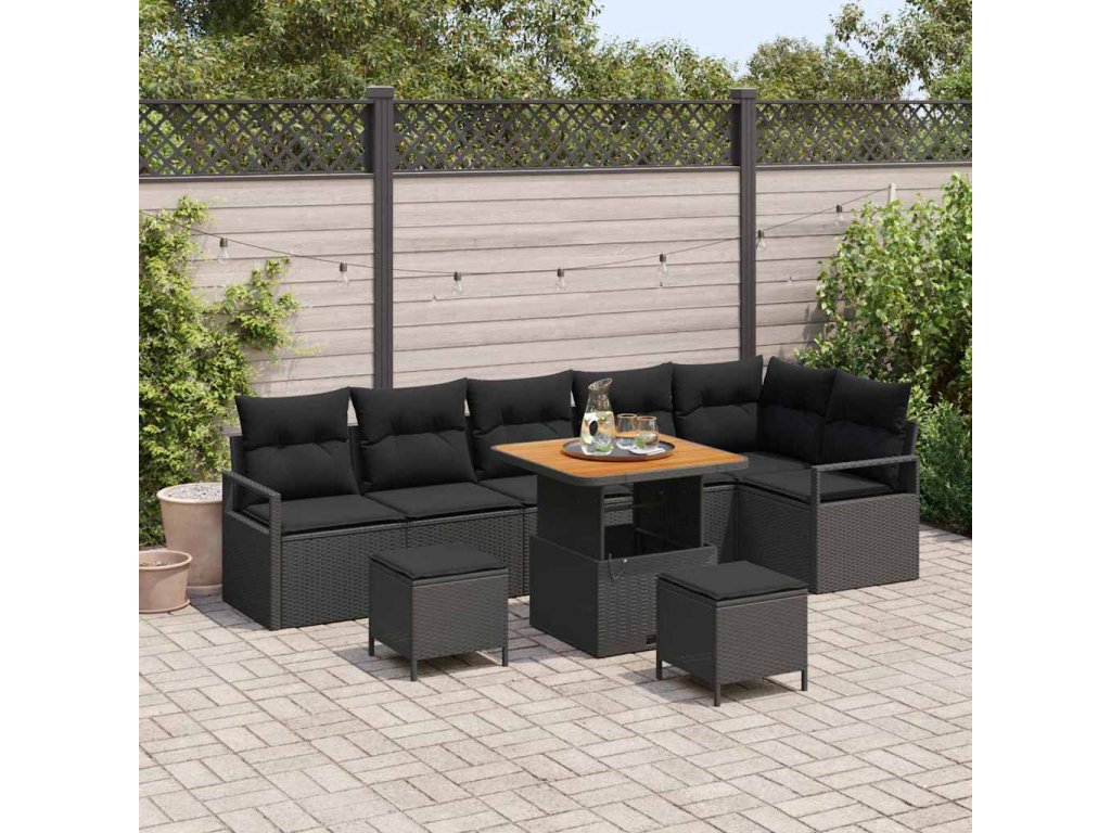 Sada zahradních pohovek s polštářem 9 pcs Černá Poly ratan 3362539