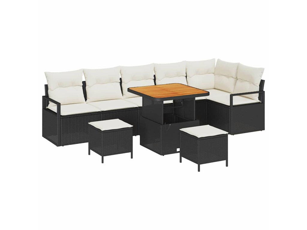 Sada zahradních pohovek s polštářem 9 pcs Černá Poly ratan 3362540