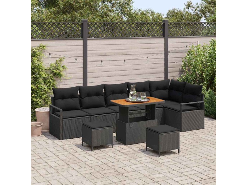 Sada zahradních pohovek s polštářem 9 pcs Černá Poly ratan 3362544