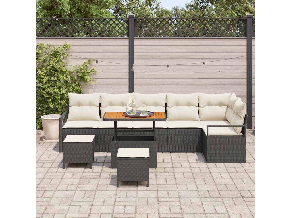 Sada zahradních pohovek s polštářem 9 pcs Černá Poly ratan 3362545
