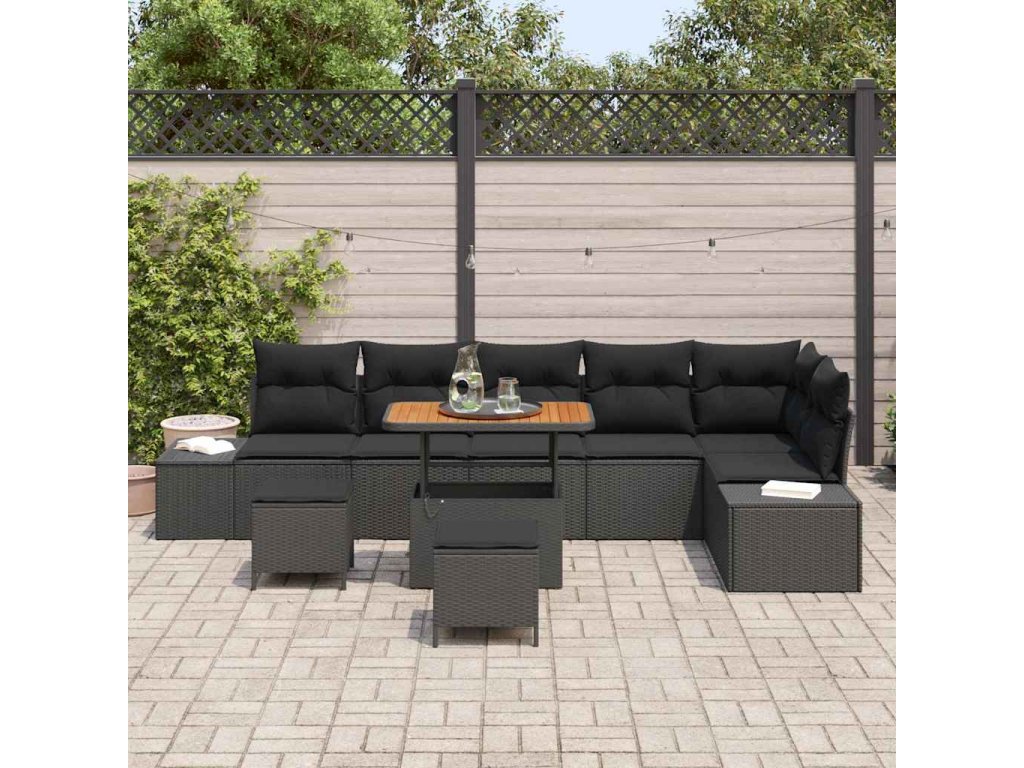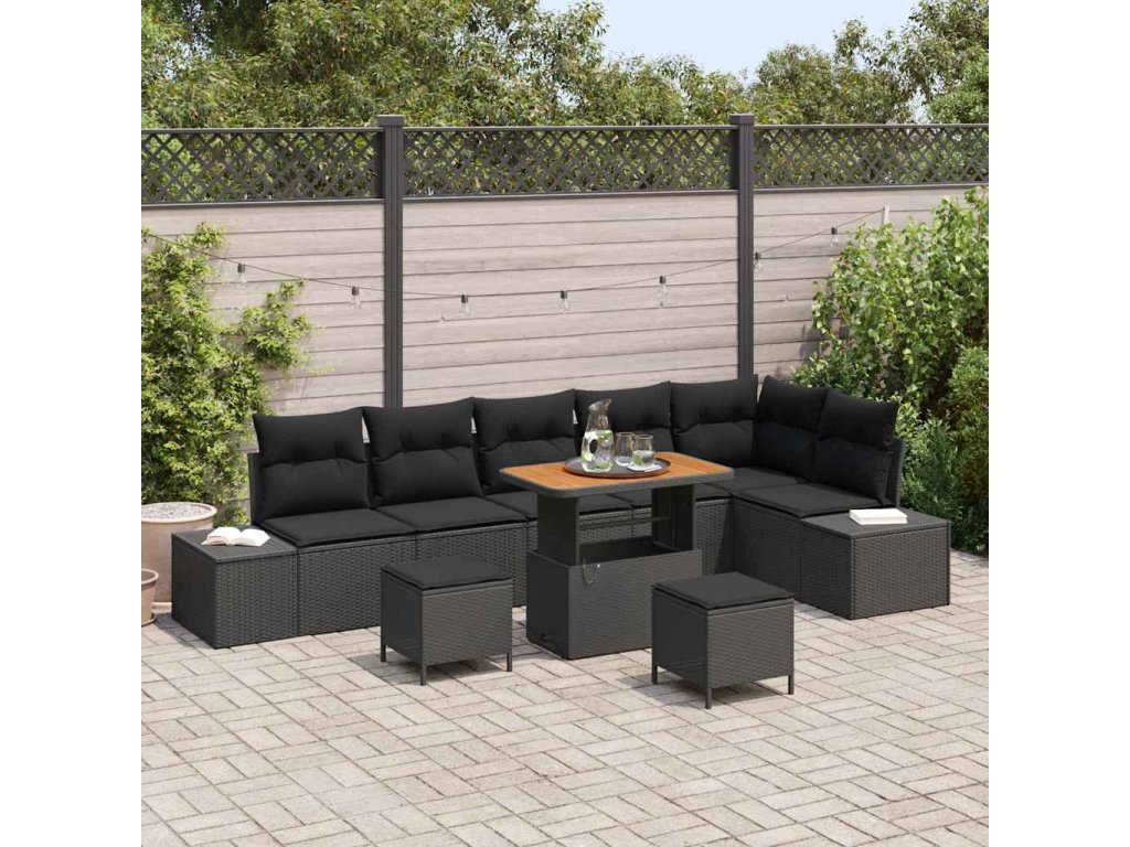 Sada zahradních pohovek s polštářem 9 pcs Černá Poly ratan 3362804