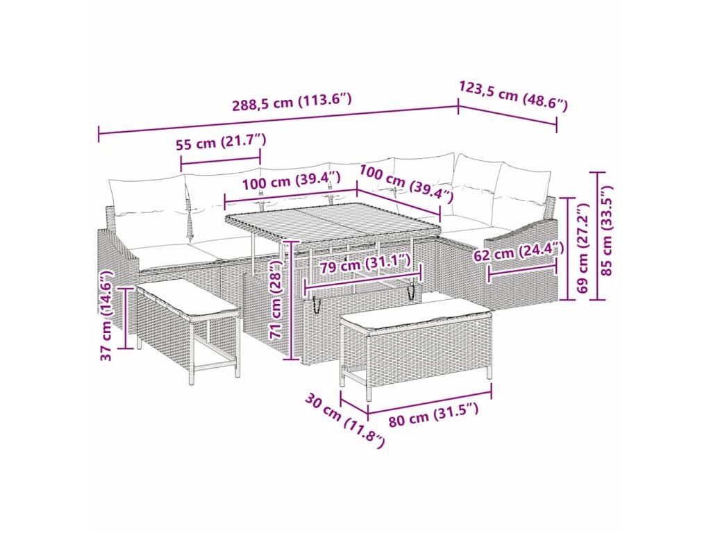 - Univerzální komponenty: Sada obsahuje ergonomicky navržené polštáře se zipovými uzávěry, takže se snadno čistí. Poly ratanová opěradla zvyšují pohodlí a dodávají eleganci celkovému designu, zatímco ocelové rámy zajišťují spolehlivou stabilitu a oporu.