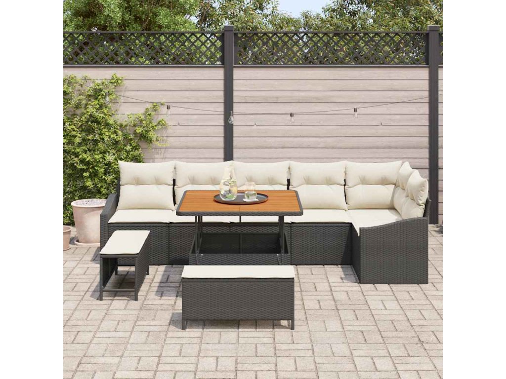 Sada zahradních pohovek s polštářem 9 pcs Černá Poly ratan 3364615