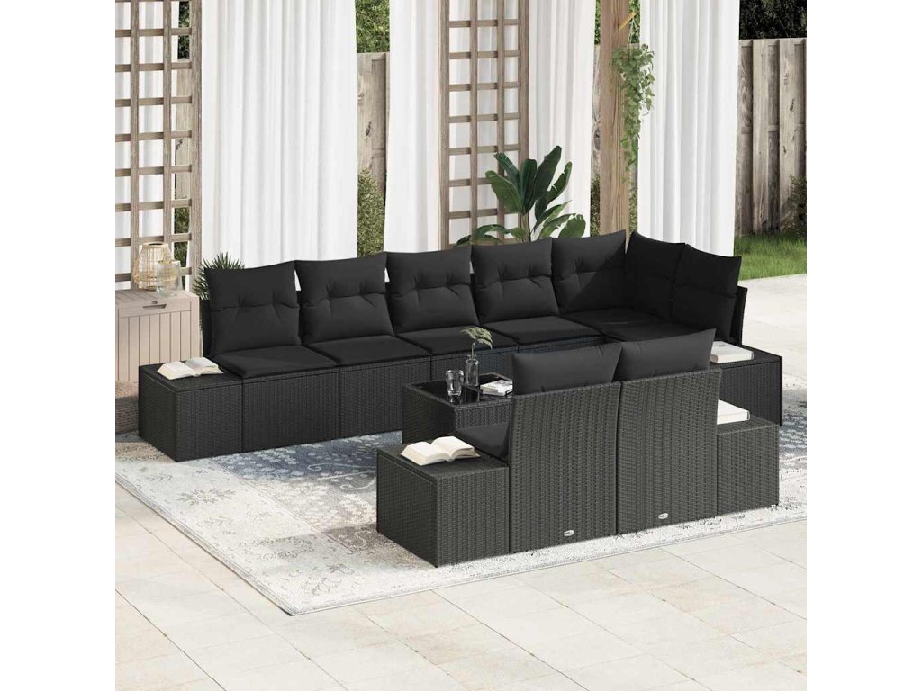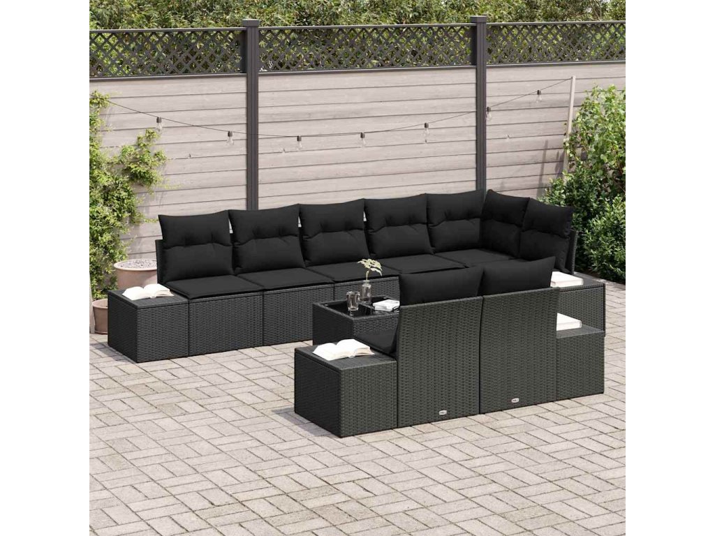 Sada zahradních pohovek s polštářem 9 pcs Černá polyratan 3347123