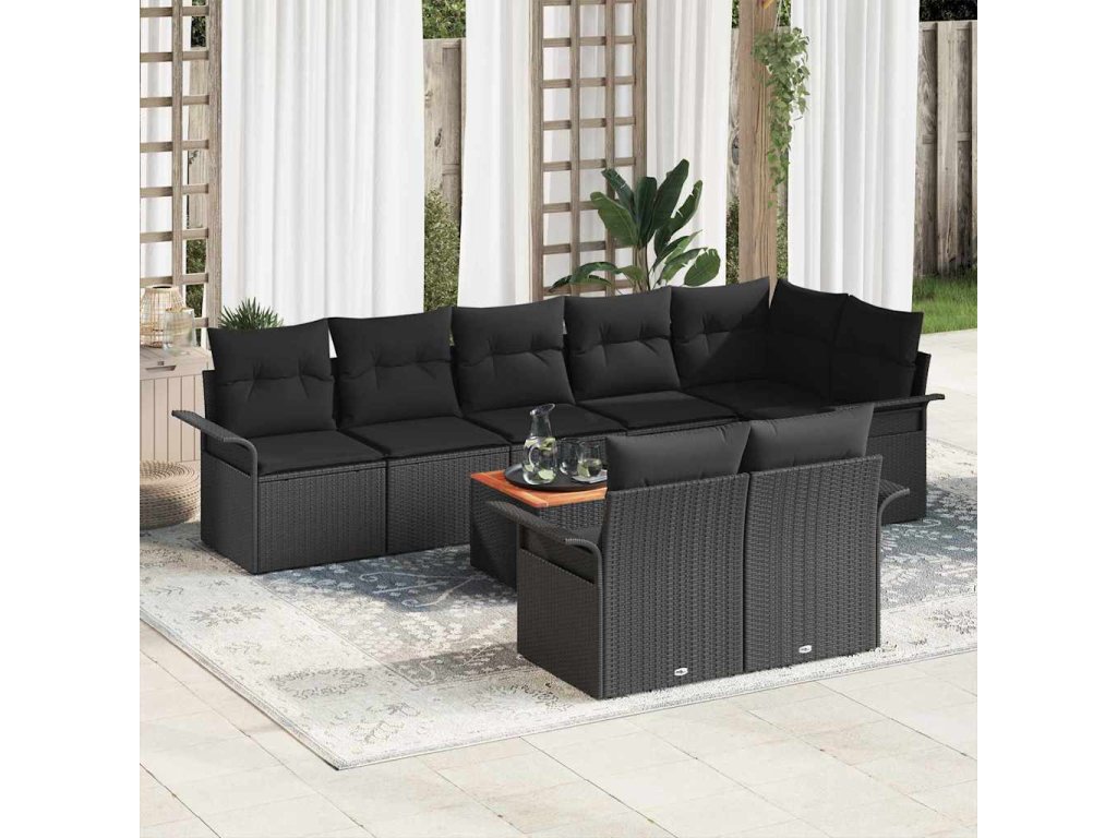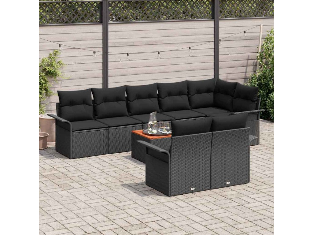 Sada zahradních pohovek s polštářem 9 pcs Černá polyratan 3347345