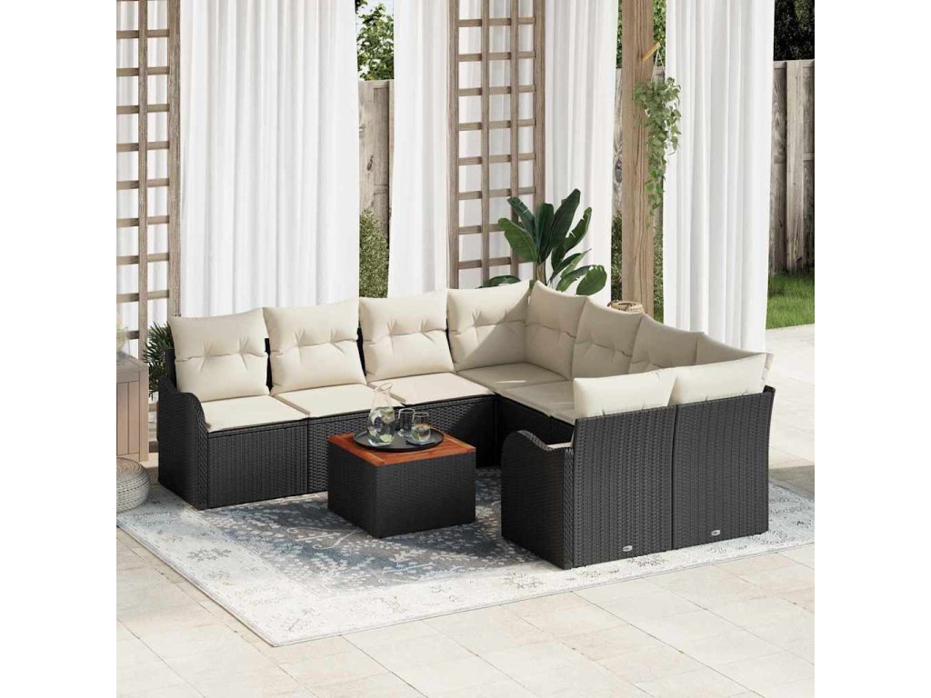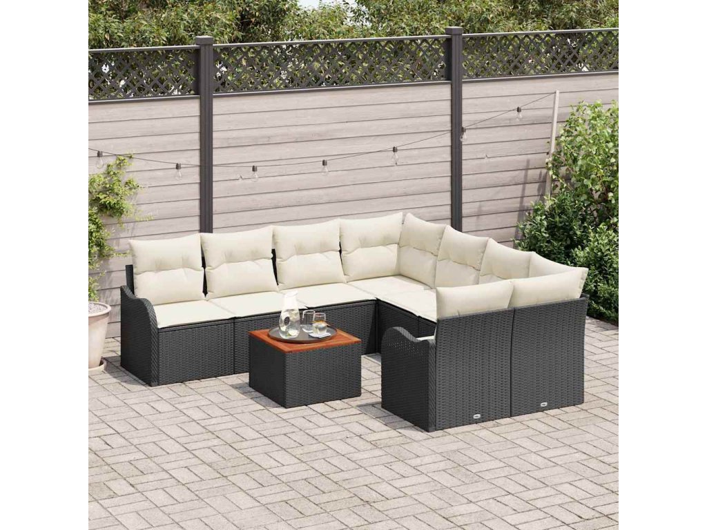 Sada zahradních pohovek s polštářem 9 pcs Černá polyratan 3347432
