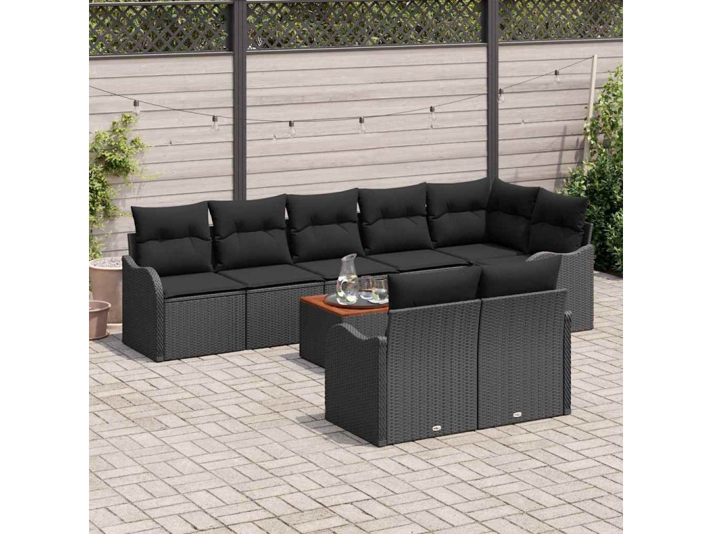 Sada zahradních pohovek s polštářem 9 pcs Černá polyratan 3347471