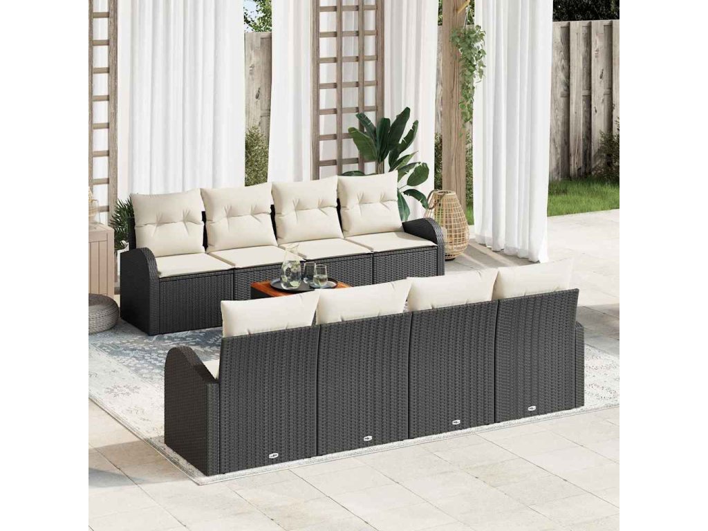 Sada zahradních pohovek s polštářem 9 pcs Černá polyratan 3347551