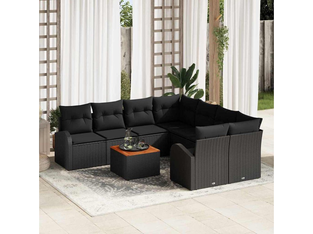 Sada zahradních pohovek s polštářem 9 pcs Černá polyratan 3347562